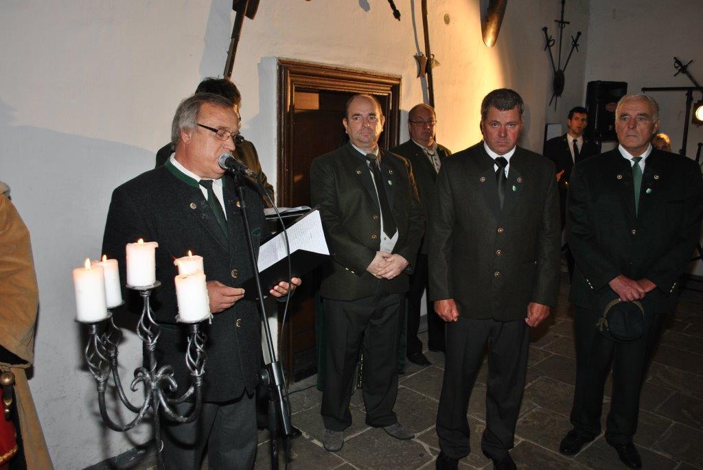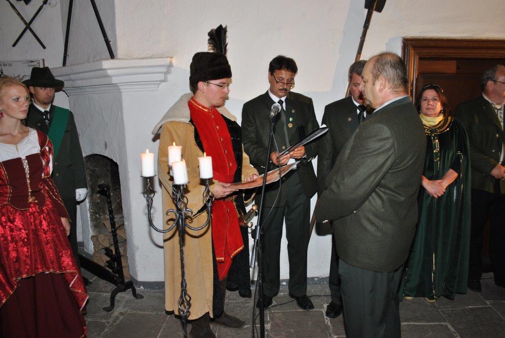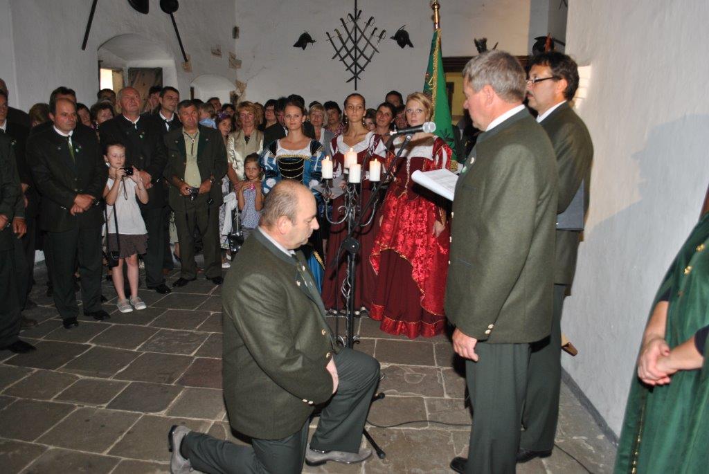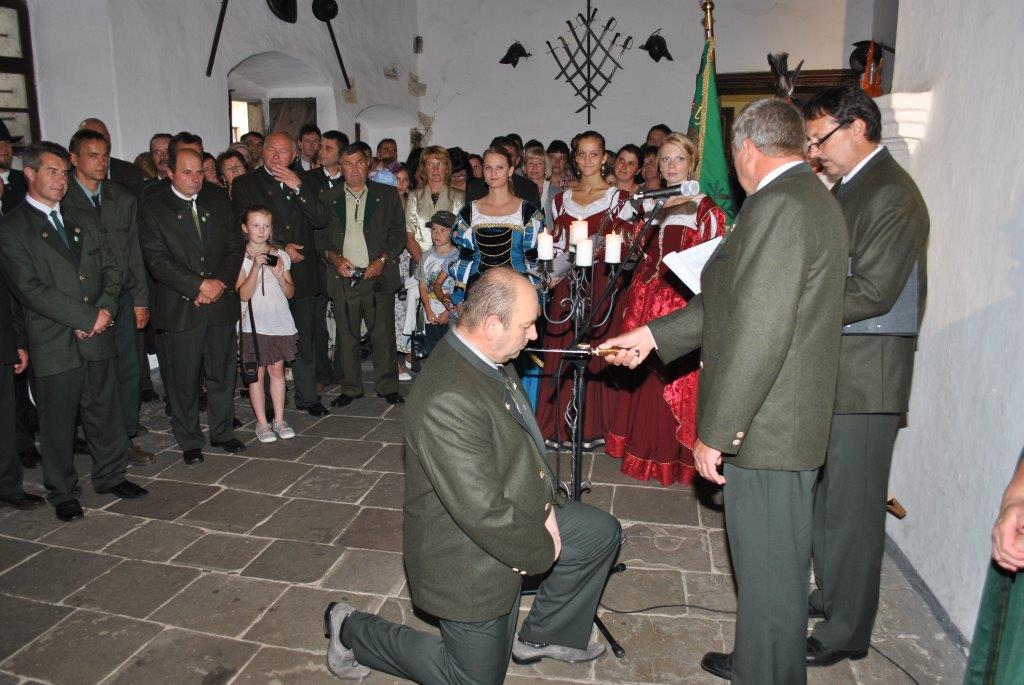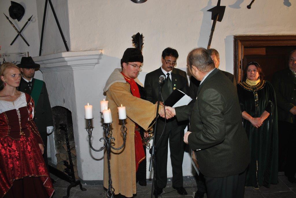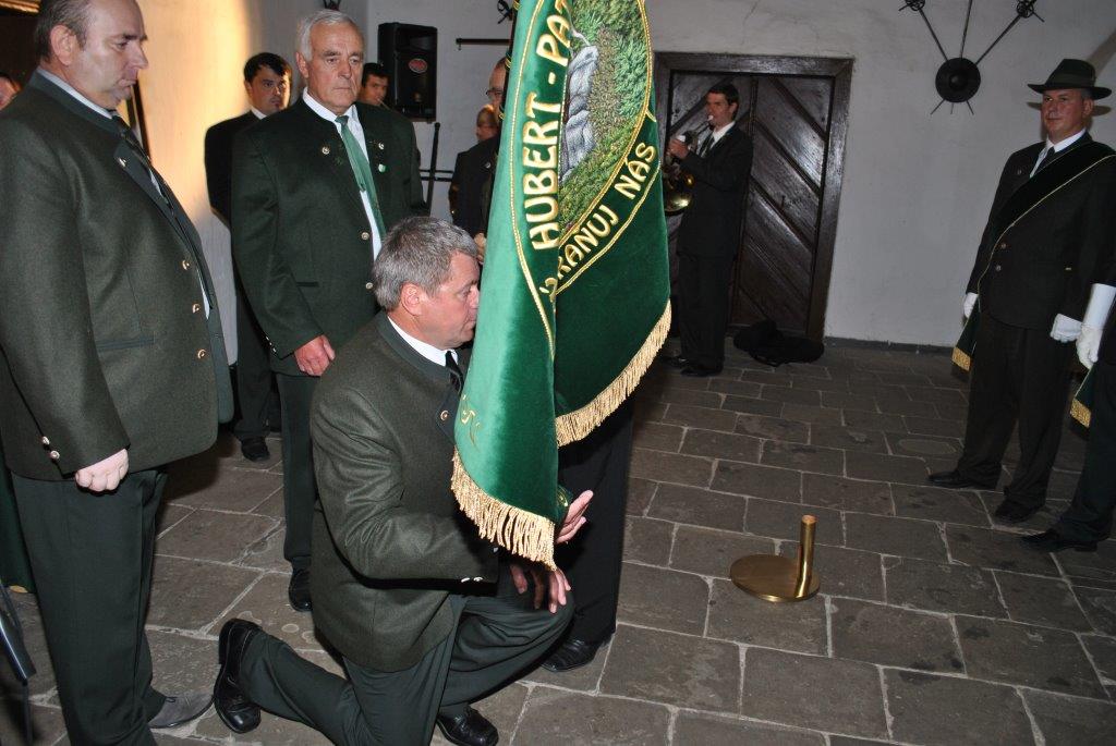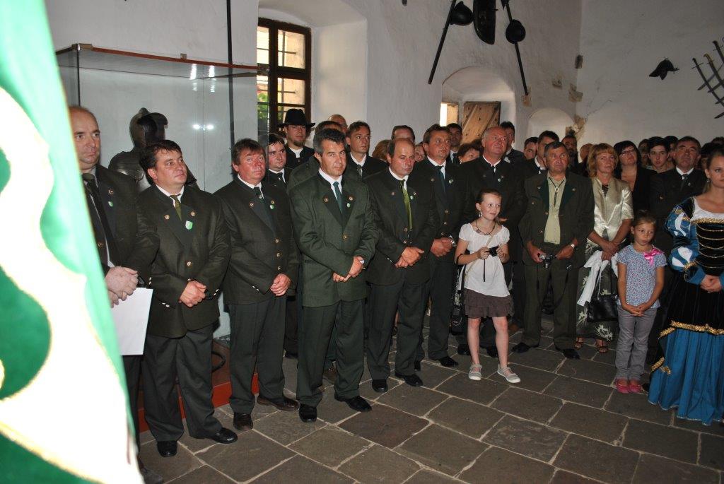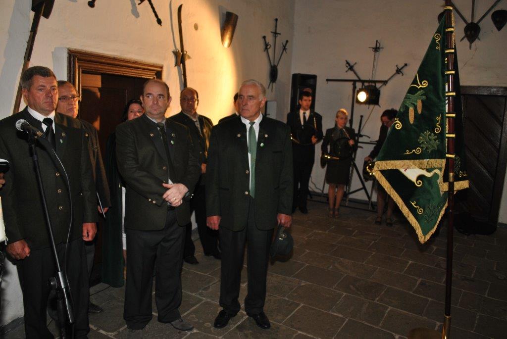 Anton Bulák pasovaný za poľovníka na Oravskom hrade v sále rytierov a pri preberaní poľ. štandarty ako najmladší člen PZ. V roku 2012.